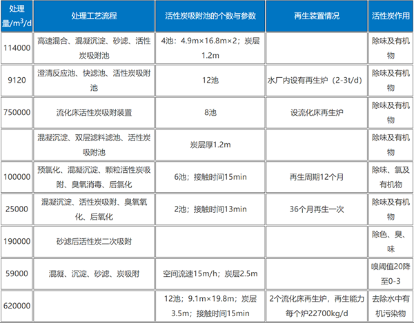 國(guó)外顆粒活性炭的應(yīng)用情況見表