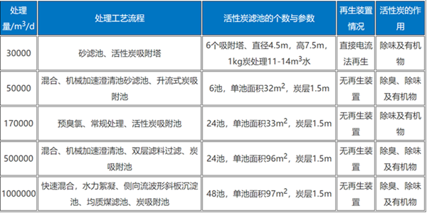 法國(guó)南希市水廠,處理能力10萬(wàn)m3/d,采用0.9~1.0mm的顆?;钚蕴看嫔疤繉雍?.5m,主要用于去除水中的臭和味。美國(guó)西弗吉尼亞洲尼特羅水廠,處理能力2.66萬(wàn)m3/d,采用單池面積72.3m2的顆?;钚蕴课匠?個(gè),炭層厚1.5m,流速9~10m/h,在氯仿抽提物濃度較高時(shí)(約1000μg/L),去除率可達(dá)84%~89%。